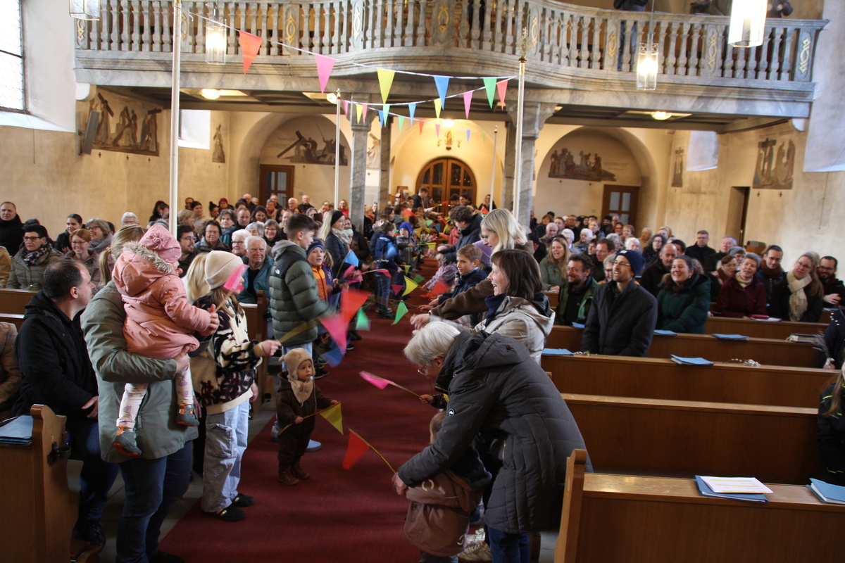 Pater Silvester zelebrierte den Gottesdienst und die Mitglieder des Familiengottesdienst-Teams verstanden es wieder wunderbar die vielen Kinder in das Thema einzubinden.