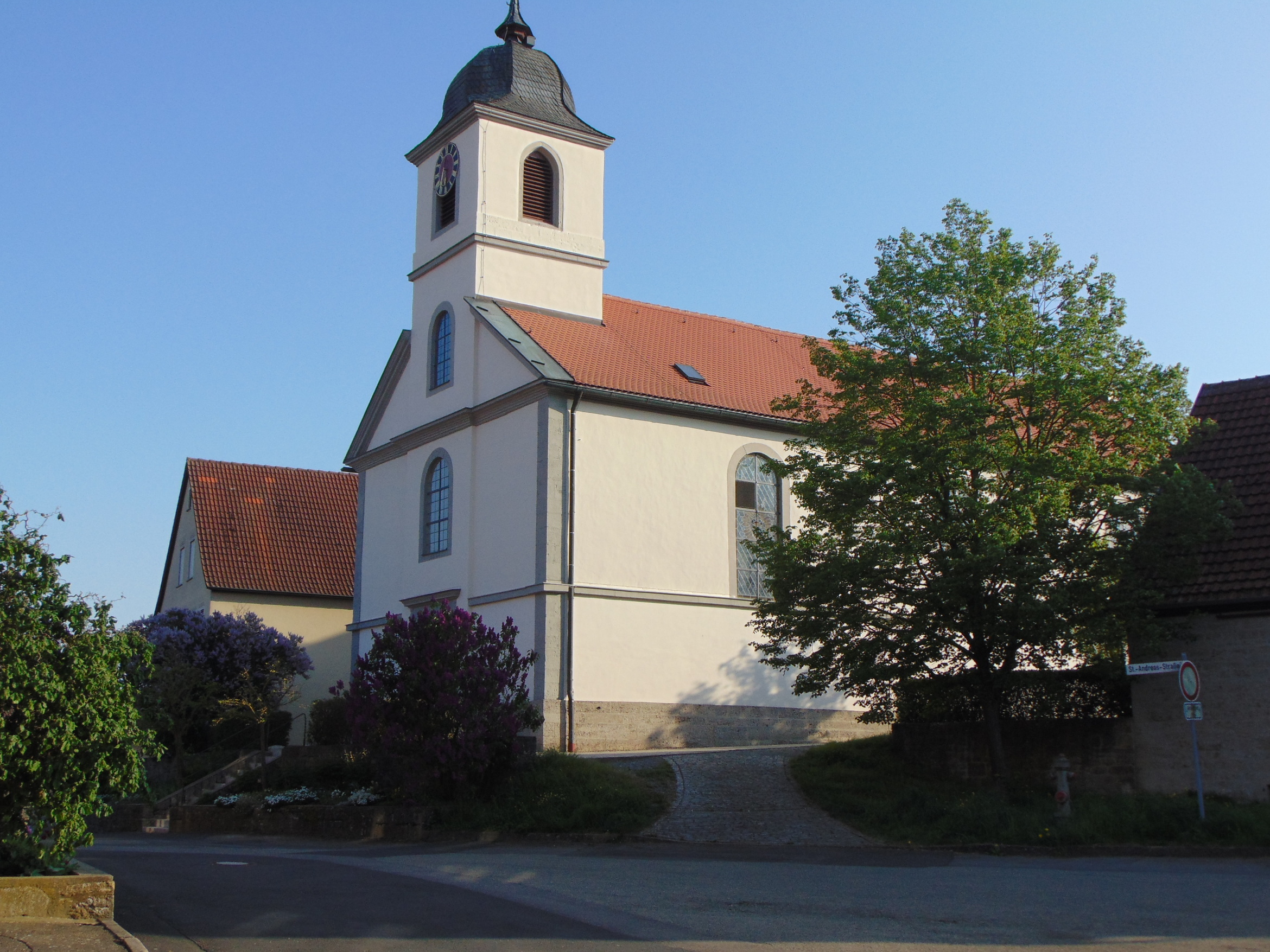 Die Kuratiekirche St. Laurentius in Osthausen wurde um 1614 erbaut und am 3. April 1945 fast vollständig zerstört, wobei der ursprüngliche Hochaltar von 1615 verbrannte. Der Wiederaufbau wurde 1949 abgeschlossen, wobei ein Hochaltar von 1737 aus Frickenhausen eingesetzt wurde. Die Kirche liegt gemeinsam mit der Kirche in Oellingen am Unterfränkischen Jakobusweg.